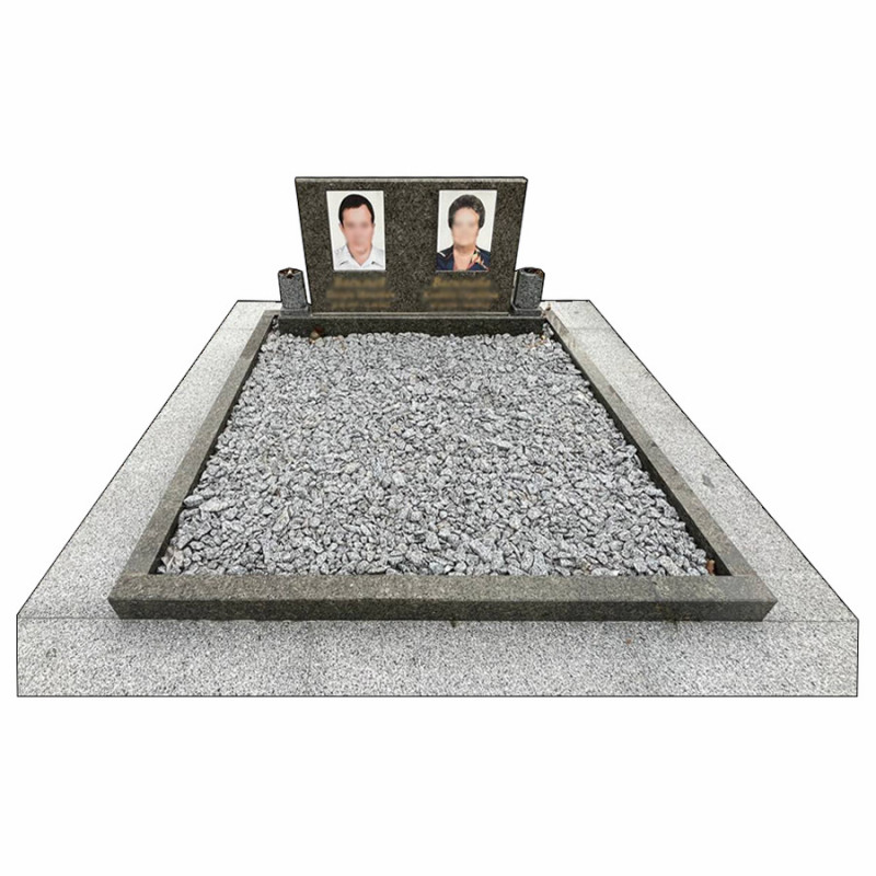 Пам'ятник на двох з керамікою на кладовище № 74421. Кольорова кераміка врізана в пам'ятник з глибокими буквами під покраску в золотий колір. На широкій підставці під пам'ятник встановлені гранітні вази по обидва боки. Навколо квітника укладена гранітна плитка.
